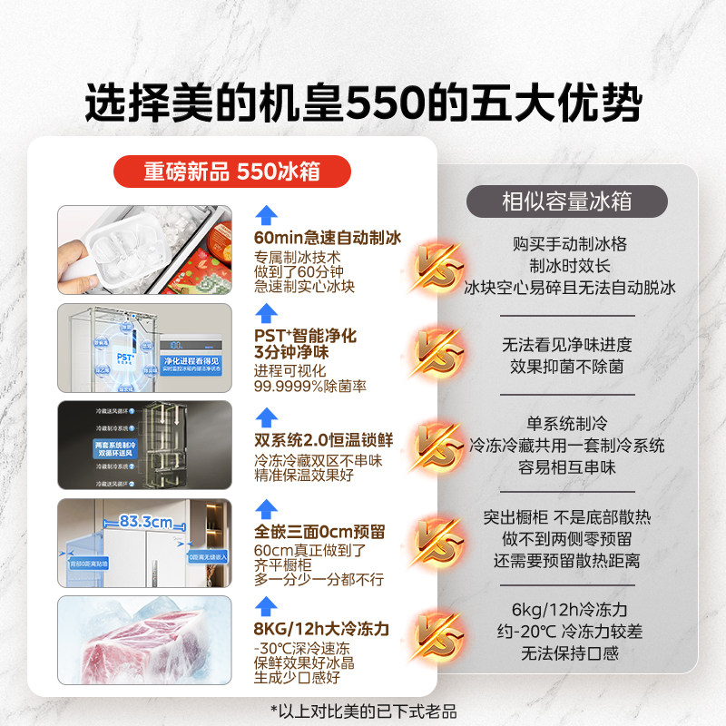 政府补贴美的M60机皇550双系统2.0零嵌入式制冰冰箱家用法式四门