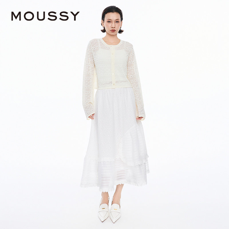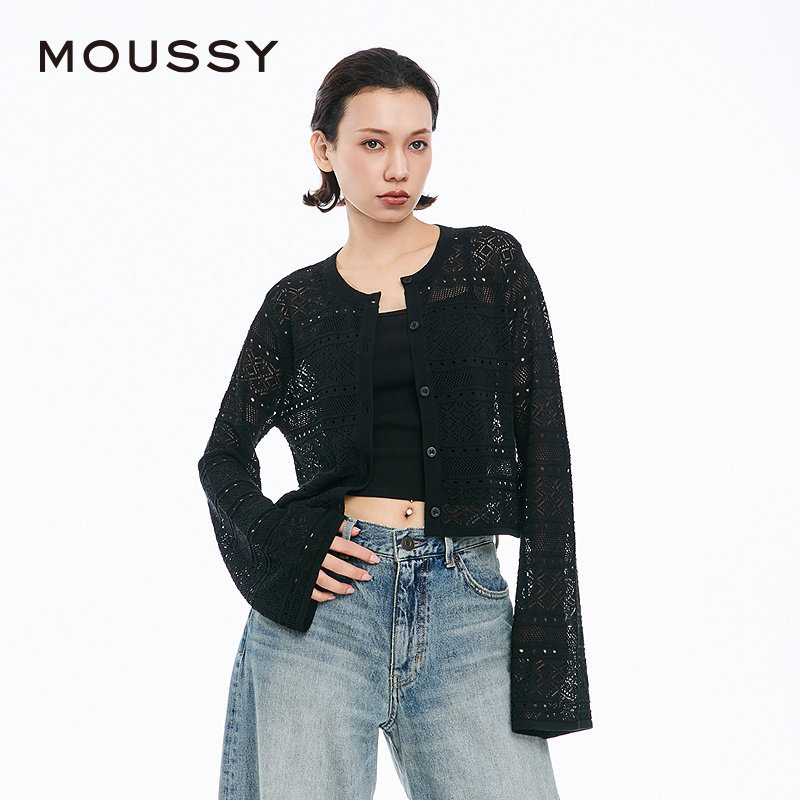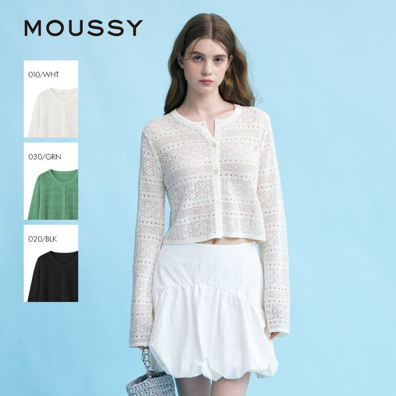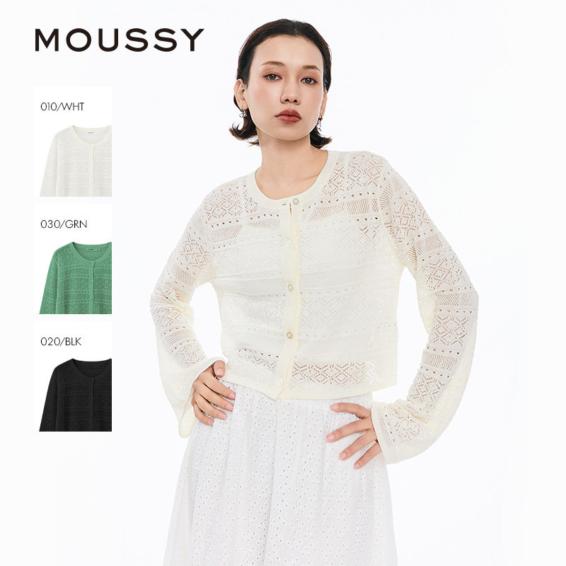 MOUSSY 春季简约淑女风通勤薄款针织开衫女028JSX70-1029